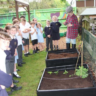 Bob Flowerdew has been to visit the years 3 and 4 as part of their topic 'plants'. The two years have planted many different plants, created watering time tables and hope that they will be able to taste their own fruit and vegetables later in the year.